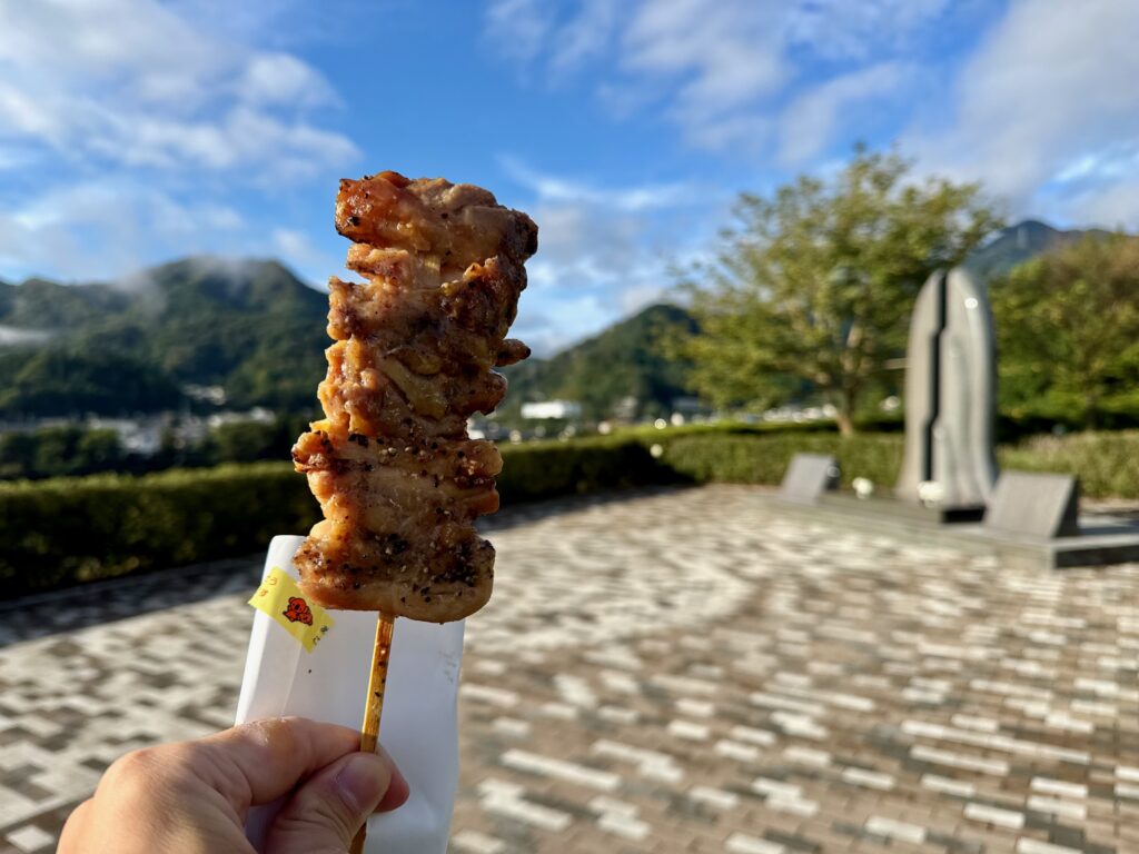 談合坂SAではなく、最初からここに寄ればよかった。混んでないしチキンステーキ串あるし。いったんこれを朝ごはんとする。