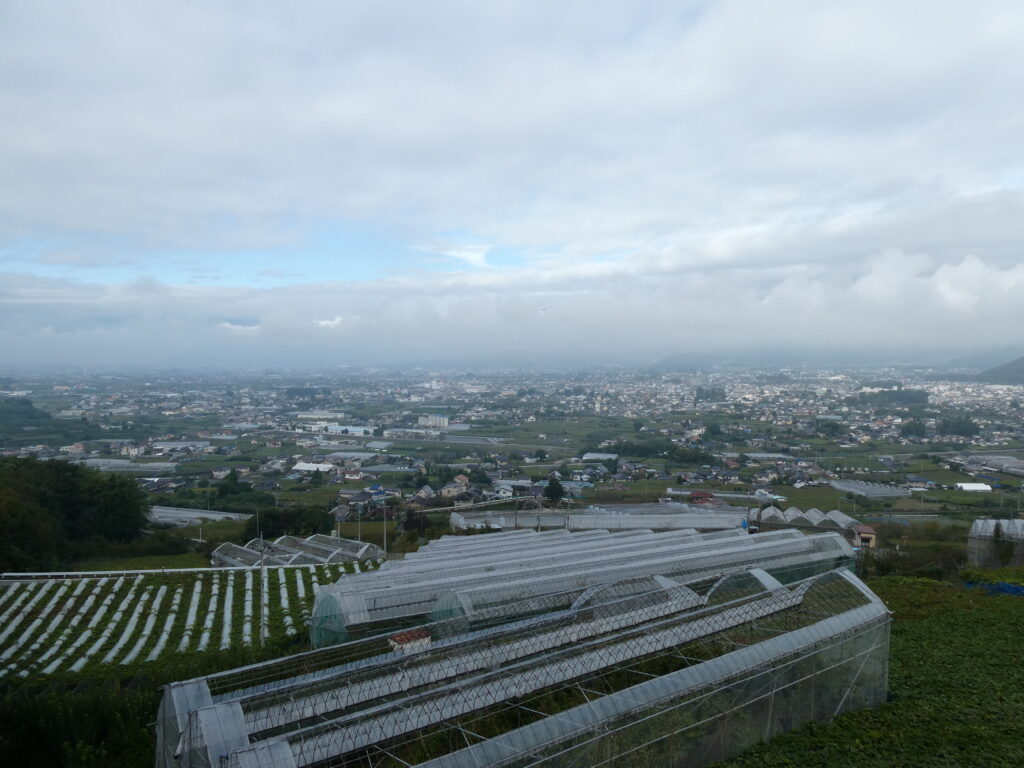 中央道を通って到着する。八王子のあたりで霧が出ていたが、ここまで来ると晴れてきた。