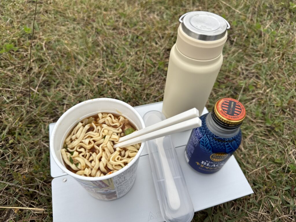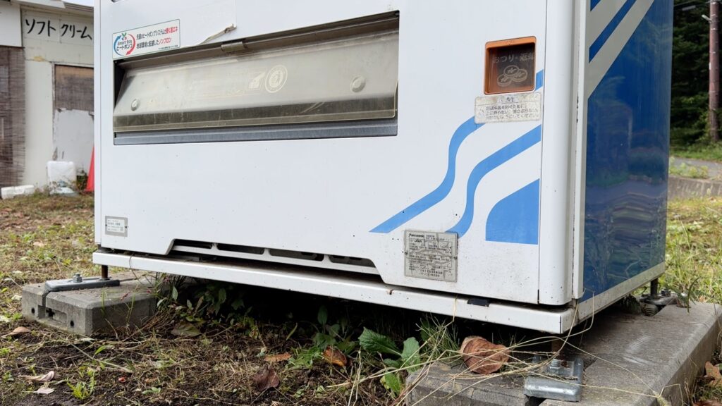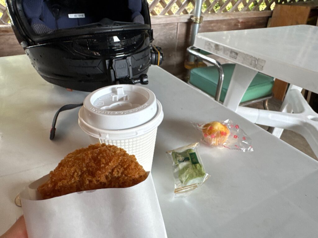 ここの売店は神。テントらしきものを見つけたので、ちょっと物を買って休ませてくれないかなと思ったところ、小屋を使わせてもらった。これで雨が弱くなるまで余裕で待てる。コロッケとてもおいしい。