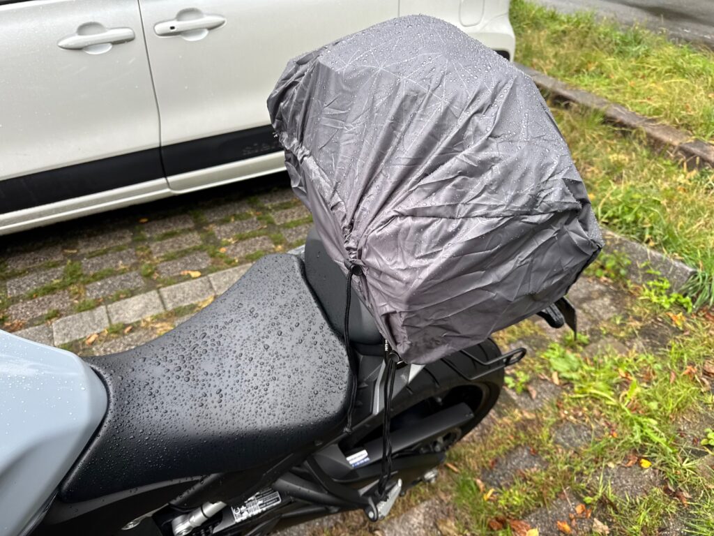 シートバッグのレインカバーと、何か拭く用のウエスを持ってて良かった。バイクを拭いて出発する。