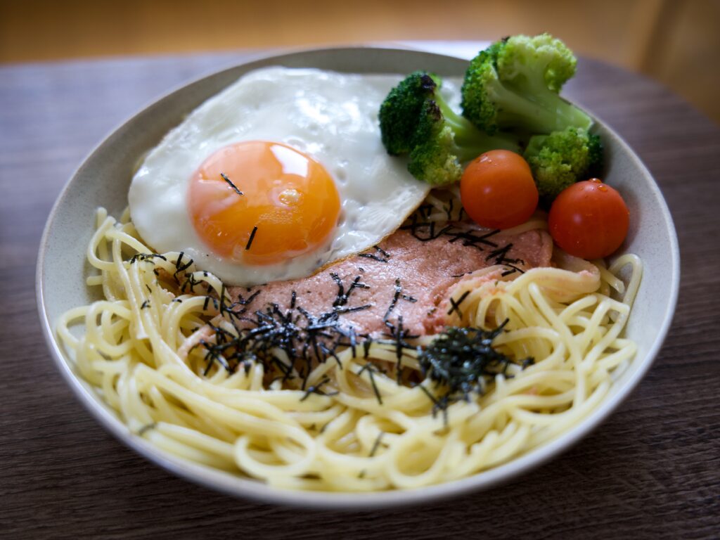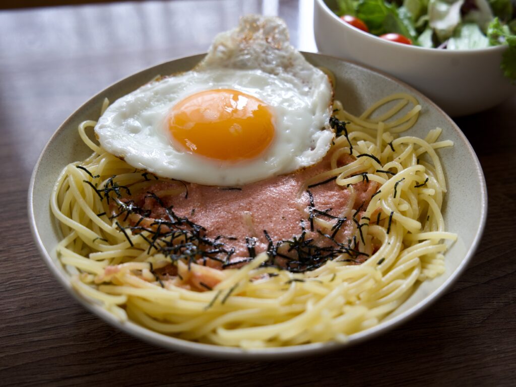 目玉焼きのせたらこパスタ