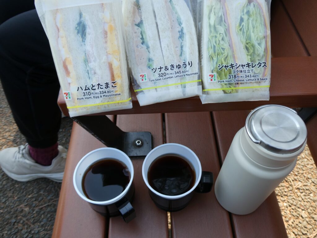 セブン-イレブンのサンドイッチと、家から持参した黒烏龍茶ホット。