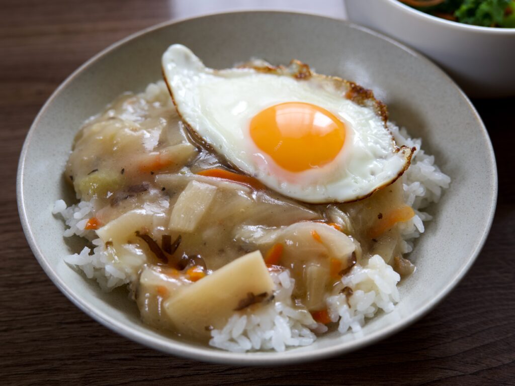 3月30日(月)定番の中華丼。とてもおいしい。ここに花椒(ホアジャオ)をかけて食べるよ。